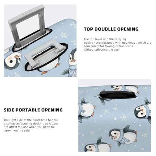 Cute Penguins Snowflake Luggage Cover Protector Elastic Washable Anti-Scratch Suitcase Covers With Zipper Closure For Luggage 18-32 Inch Large 3