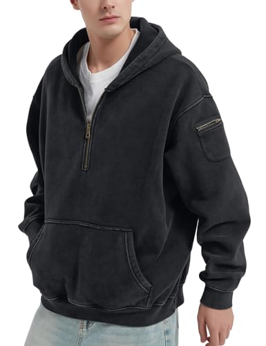 FAIABLE Mens Hoodies Fleece Fall Fashion Outfits Half Zip Sweatshirts Winter Jackets Oversized Pullover Tops Clothes 2025 6