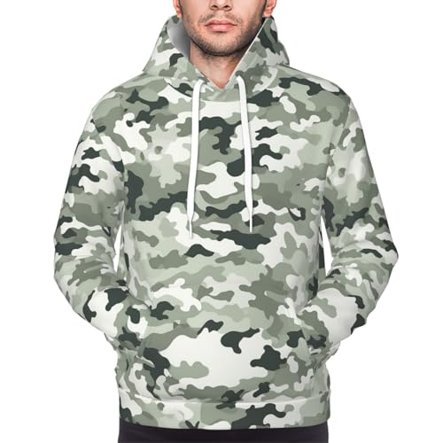 Men's Fleece Pullover Hoodie Long Sleeve Hooded White camouflage Sweatshirt Casual Shirts With Pockets 4X-Large 4