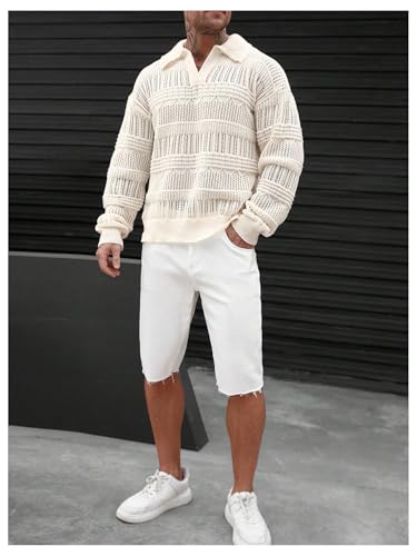 • Lightweight sweaters for men, lapel collar v neck, long sleeve, sheer, hollow out, knitted, crochet