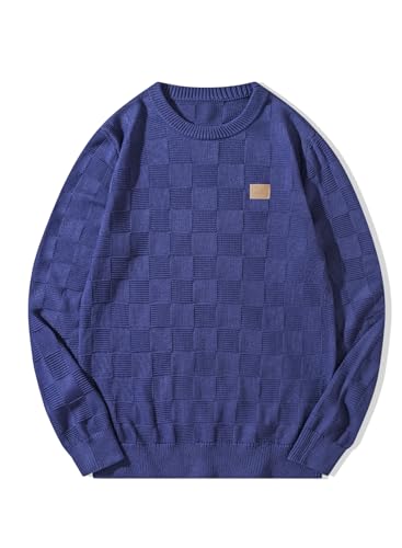 HOT ! JMIERR Men's Crewneck Sweater Casual Fall Checkered Long Sleeve Knit Pullover Sweaters