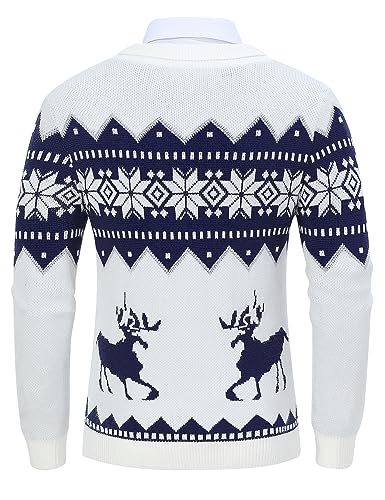 TURETRENDY Mens Ugly Christmas Sweaters Snowflakes Holiday Reindeer Printed Shawl Collar Knitted Long Sleeve Pullover Jumpers 2