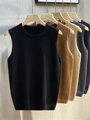Men’S Sweater Vest Solid Color Knitted Sleeveless Pullover with Button Detail Casual Waistcoat 4