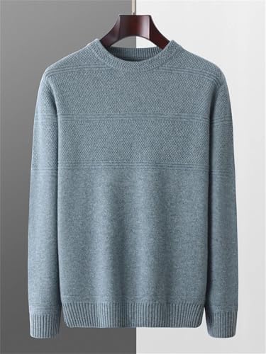 HOT ! Men's Merino Wool Pullover Knitted Textured Round Neck Solid Color Casual Long Sleeve Warm Sweater Top