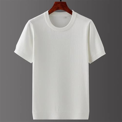 HOT ! Men Solid Color Short Sleeve Knitted Sweaters Stretchy Casual Winter Silk Cotton Pullovers