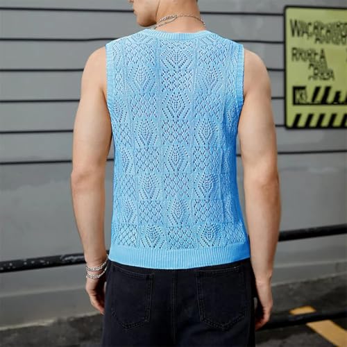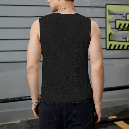 Men Beach Tops Knitted Hollowed Out Vest Crew Neck Sleeveless Clothes Vest 6