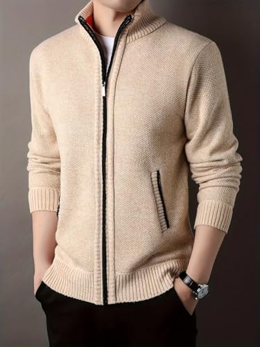 HOT ! Mens Sweater Cardigan Full Zip Knitted Long Sleeve Sweaters Men Workout Outfits (US, Alpha, Small, Regular, Regular, Beige)