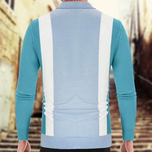 Cambkatl Men's Vintage Striped Colorblock Long Sleeve Cardigan Sweater Button Down Collared Knitted Outerwear 7