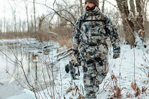 • ADAPTABLE FOR YOUR ENVIRONMENT: Our clothing is durable in the outdoors but comfortable enough for the hunt. A safety-harness opening allows for easy access, and the telescopic wrist cuffs with thumbholes help give this jacket a custom, secure fit while keeping the scent in and the cold out. It includes 4 zippered pockets (3 outer & 1 inner) to keep essential gear like your range finder, binoculars, bow release, hunting license, phone, and other essentials secure so you can always be prepared.
