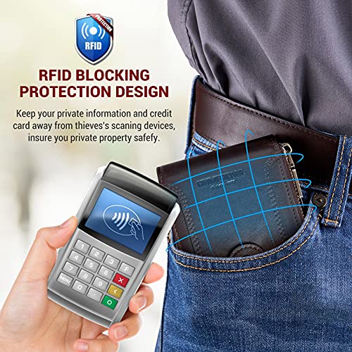 HOT ! gzcz Zipper Wallet For Men Genuine Leather RFID Blocking Bifold Wallet for ID Window, Zip Coin Pocket and Credit Card Holders Large Capacity (Coffee)