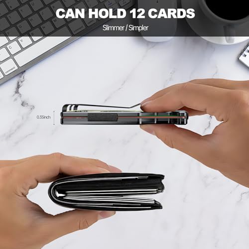 • Ultimate Portability and Capacity: This ergonomically designed slim card wallet measures a mere 4.3 x 3.6 x 0.78 inches and can hold up to 12 cards and 5 bills with ease, fitting seamlessly into various pockets. The weight is only 73.5g. Ideal for everyday use, vacations, work, and important occasions, it's the perfect gift choice.
