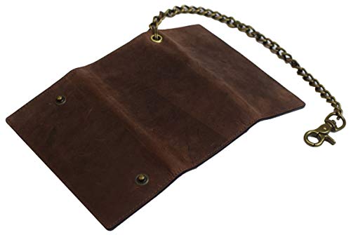 More information about Men's RFID Signal Blocking Biker's Vintage Brown Leather Long Tri-fold Chain Checkbook Card ID Wallet (Brown)