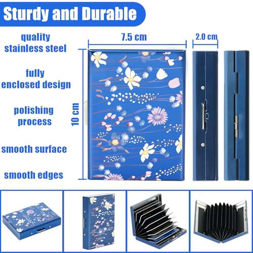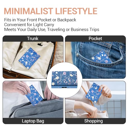 BONSYL® Credit Card Holder Wallet Pro Max Upgraded | 10 Card Slots | RFID Blocking Metal Wallet for Men & Women | Ultra-Slim Design | Easily Removable Money & Cards (10 Card/Blue/Flower) 6