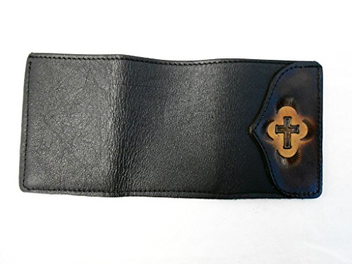 Mens Handcrafted Leather Trifold Wallet Christian Cross 5