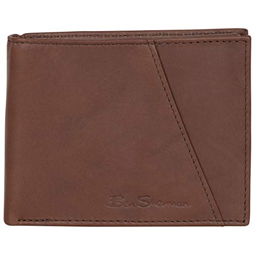 HOT ! Ben Sherman Men's Manchester Bifold Slim Wallet Full-Grain Leather RFID Minimalist Gift Box, Marble Brown Pa, One Size