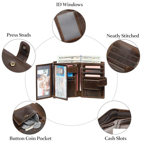• Ideal Present: The mens leather wallets are packaged in an exquisite gift box. It is not only a great present for yourself, but also a gorgeous gift for his Birthdays, anniversaries, Valentine's Day, Christmas, Father's Day, and any other important date