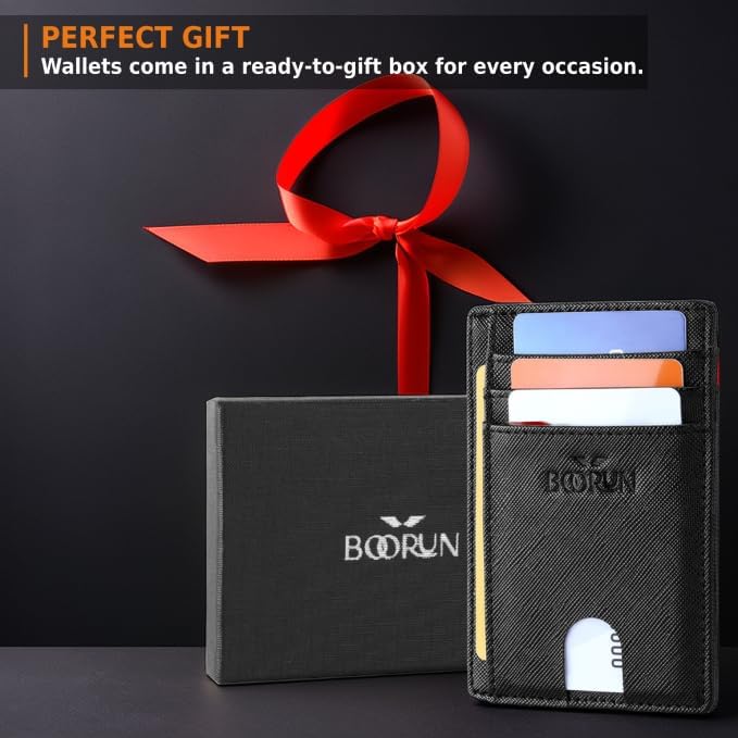 BOORUN Slim Minimalist Thin RFID Blocking Leather Wallets for Men Women With Gift Box 1