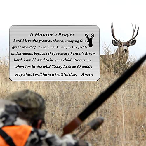 • ◆Hunters Prayer Gift for Him Her◆This hunter wallet card hand stamped the words”A Hunter's Prayer Lord, I love the great outdoors, enjoying this great world of yours. Thank you for the fields and streams, because they're every hunter's dream. Lord, I am blessed to be your child. Protect me when I'm in the wild.Today I ask and humbly pray,that I will have a fruitful day.Amen”