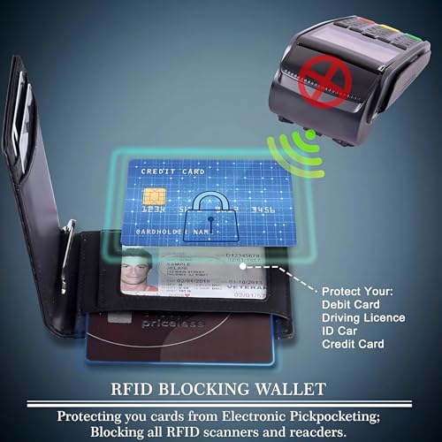 Slim Wallet For Men RFID Blocking Leather Wallet Front Pocket with Money Clip Bifold Credit Card Holder 6