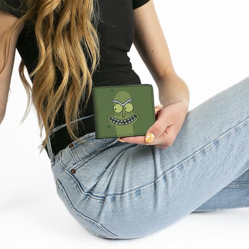 HOT ! Buckle-Down Rick and Morty Wallet, Bifold, Rick and Morty Pickle Rick Grinning Greens, Vegan Leather