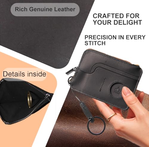 • 【Anti-Loss Storage and Secure Organization】Features a dedicated slot for Airtag(device not included) to track your ​​key chain wallet​​ via Phone. Combines two quick-access card slots with a tear-resistant zipper coin compartment—ideal as a ​​mini wallet for women​​ keeping bills/cards separate from loose change.