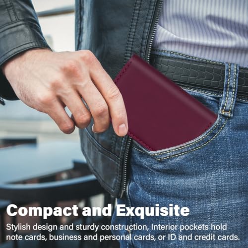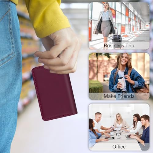 Business Credit Card Holders, Magnetic Sealing Anti Drop, PU Leather Debit Card Protector Organizer Case (Maroon Red) 5