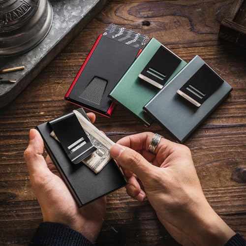 DUGRAFT Card Wallet for Men Credit Card Holder Minimalist Slim Wallet RFID Metal Pop Up RFID Blocking Wallet With Money Clip, Holds 5-6 Cards 7