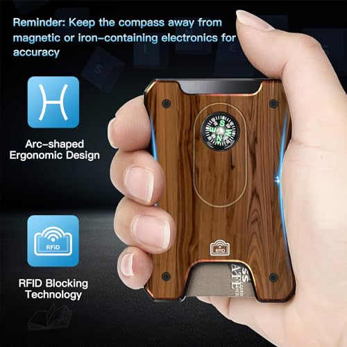 HOT ! Metal Wallet for Men, Ergonomics Design Money Clip Wallet with Compass, Easily Removable Money & Cards, Minimalist Slim Wallet with RFID Blocking