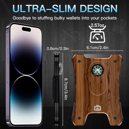 Metal Wallet for Men, Ergonomics Design Money Clip Wallet with Compass, Easily Removable Money & Cards, Minimalist Slim Wallet with RFID Blocking 2