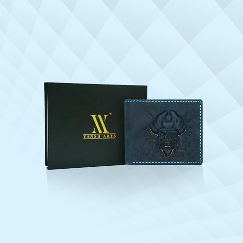 More information about Wallet For Men- 3D Embossed Pirates Captian Skull Themed Design Bifold Vintage Distressed Genuine Leather Wallet With Two Cash Pockets And Six Card Slots (Blue)