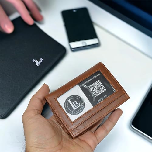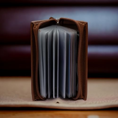 HOT ! Leatherboss Business Card and Picture Holder with All Around Zipper, Chocolate