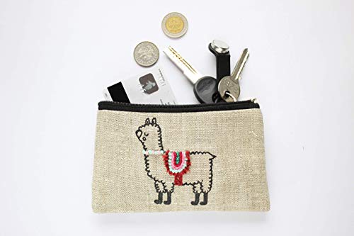 Alpaca coin purse Small embroidered llama wallet Linen zippered pouch for women Change wallet 1