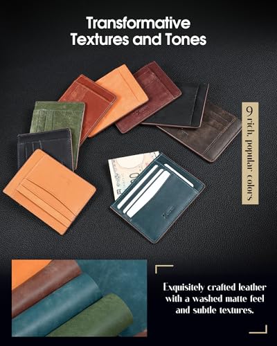 Men's Slim Wallet Italian Pebbled Leather Minimalist Front Pocket RFID Blocking Credit Card Holder with Gift Box Green 7