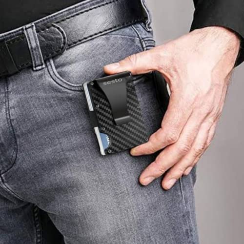 Sesto Carbon Fiber RFID Blocking Slim Metal Credit Card Holders Wallet Aluminum Real Carbon Fiber Men Minimalist Wallet 5