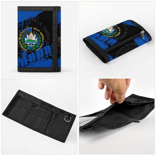 HOT ! El Salvador Flag Trifold Wallet with ID Window ID Card Holder Wallets Travel Wallet Coin Zipper Pocket