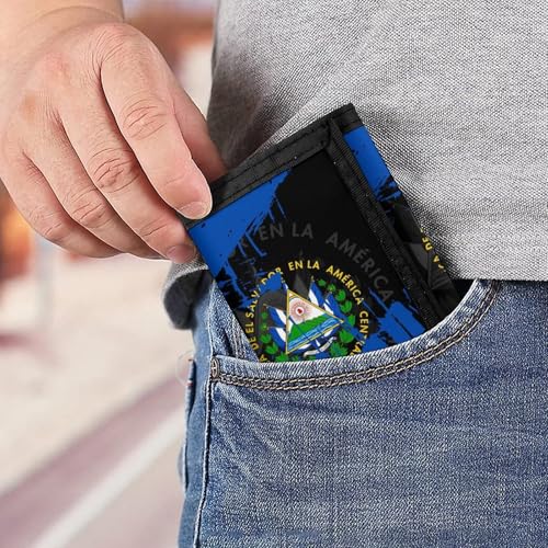 El Salvador Flag Trifold Wallet with ID Window ID Card Holder Wallets Travel Wallet Coin Zipper Pocket 7