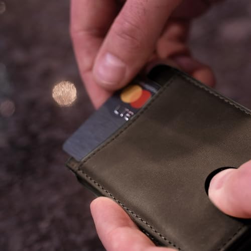 More information about RFID Blocking Slim Bifold Genuine Leather Minimalist Wallet for Men with Money Clip Pull Strap Easy Card Pullout (Minimalist Bifold Wallet without Personalization, Munich Brown)