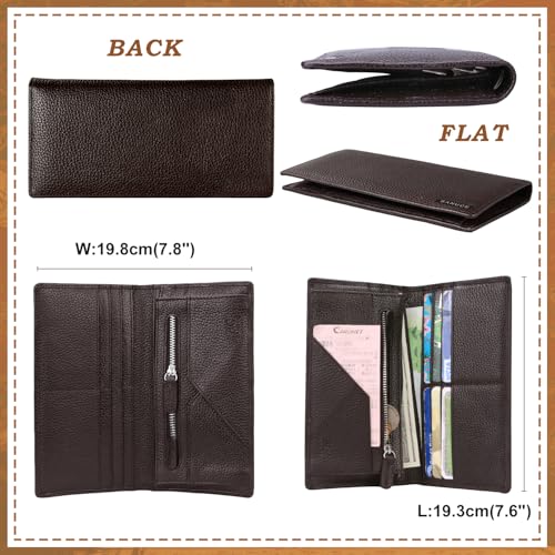 Banuce Slim Long Bifold Wallet for Men Extra Large Capacity Top Grain Leather Wallet with ID Window Credit Cards Brown 1