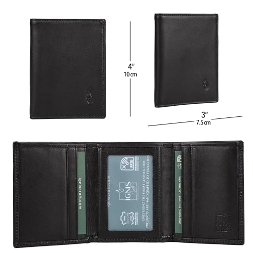 HOT ! Black Leather Card Holder Trifold Wallet for Men - RFID Blocking - Minimalist Slim Design (Apex Onyx)