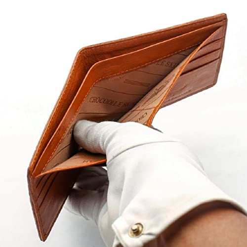 HOT ! Light Brown Crocodile Mens Wallet, Gold, Medium