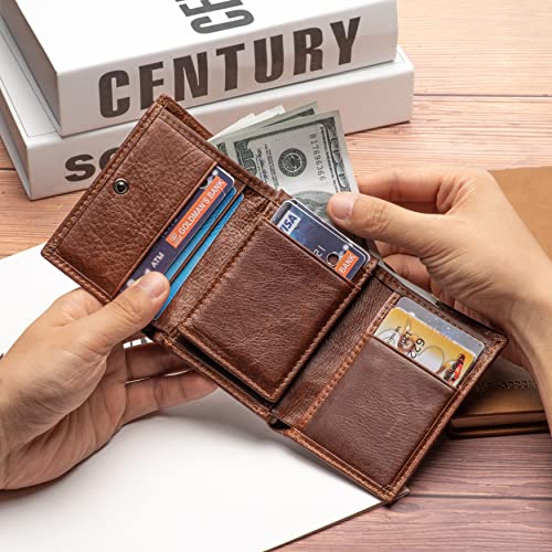 HOT ! KONVI Trifold Leather Wallet for Men with ID Holder and RFID Blocking, Coffee