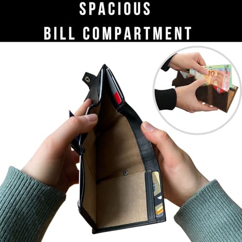 • MAXIMUM SECURITY - All compartments of this leather wallet are RFID protected, thanks to a special sewn-in membrane. No extra protective sleeves/cards necessary.