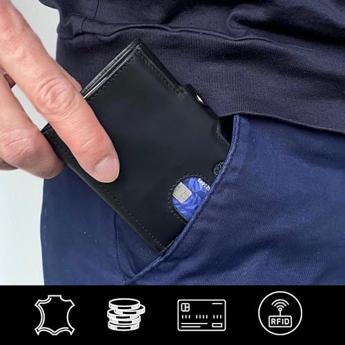 HOT ! Slim Wallet with RFID Protection - Genuine Leather Wallet - Mini Wallet with Coin Compartment - Real Leather Wallet Card Holder Small, Black