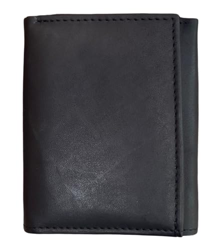 Cowhide Leather Trifold Mens Wallet 6 Credit Card Slots and ID Window 1