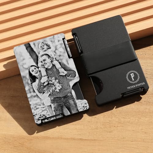 Personalized Mens Gifts, Custom Photo Minimalist Wallets for Men Husband Boyfriend Dad Son, Customized Engraved Picture Metal Card Holder for Christmas Valentines Anniversary Birthday Graduation 7