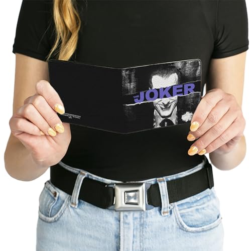 HOT ! Buckle-Down Men's PU Bifold Wallet-The Joker Sliced Portrait Black/Grays/Purple, Multicolor, 4.0" x 3.5"