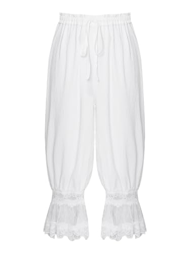Women Lace Trim Long Bloomers Elastic Waist Drawstring Loose Harem Pants Medieval 1