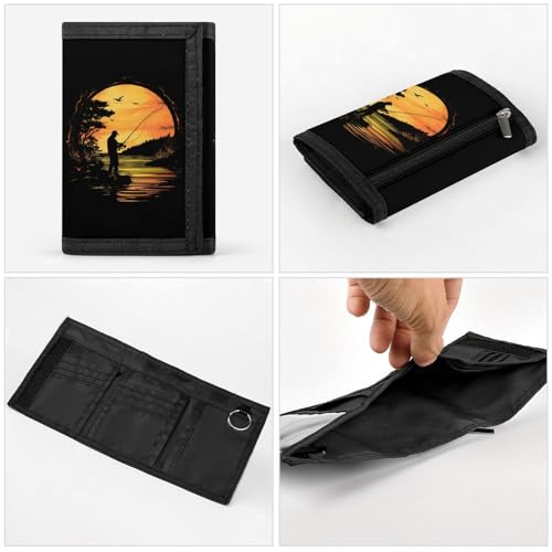 Fish Fishing Lover Mens Trifold Wallet 8 Card Holders Purse with Keychain & Photo Window Money Clip Travel Accessories 1