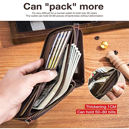 HOT ! Genuine Leather RFID Blocking Wallet for Men,Cowhide Wallet Vintage Bifold Zipper Wallet Card Organizer Money Pouch 13 Credit Card Slots+2 Cash Pouch+1 ID Window,Black