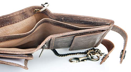 FLW Genuine Leather Biker's Wallet with Two Buckles and Metal Chain 7